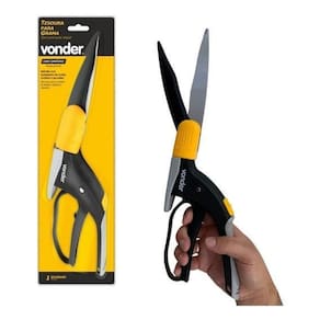 Tesoura De Cortar Grama Cabo Giratório Amolada Para Cerca Viva Tesoura corta grama/cerca viva - vonderCabo giratório em 360 graus - com 12 posições de corte que permitem fazer qualquer contorno.Lâminas com 15cm de comprimento de corte útil fabricadas em aço carbono especial de alta qualidade.Cabos em plástico leves e ergonômicos com empunhadura em borracha, proporcionando conforto durante o uso. - botão de trava que possibilita operar a tesoura com uma só mão.A tesoura é temperada em todo o corpo da peça, proporcionando maior resistência e menor desgaste durante o uso.A afiação das lâminas é feita em máquinas cnc, proporcionando excelente durabilidade do fio e um corte mais preciso e macio.Possui uma trava de segurança para fechamento das lâminas quando a tesoura não está em uso.Leve e prática no uso- comprimento da lâmina:150 mm- material do cabo da tesoura para cortar grama:plástico- comprimento total:360 mm- massa aproximada peso :0.25 kg