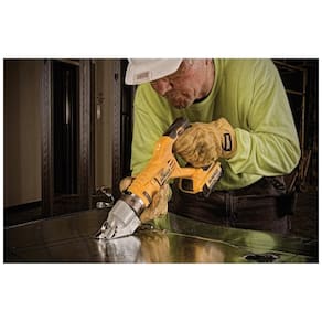 Ferramenta de 360 graus com uma cabeça giratória livre que permite ao usuário acessar espaços apertados Corta tiras de 5, que se enrolam continuamente para fora da área de corte, proporcionando cortes precisos A luz de trabalho LED ilumina a superfície Tesouras sem fio permitem que o usuário leve a ferramenta para o local de trabalho
