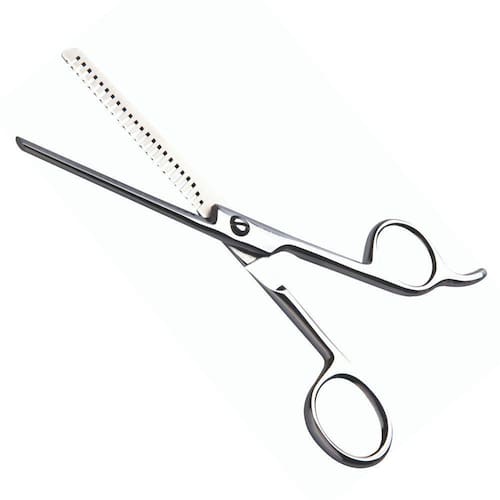 Tesoura Para Cabelos Profissionais 6" Polegadas Fio Liso e de Desbastar - Marco Boni Para retirar ou dar volume nos fios, trazendo mais movimento para os cabelos. Características: Tesoura profissional 6" em aço inox, lâmina dupla com 23 dentes para desbastar, modelo clássico, com pino regulador, apoio de dedo e anéis em silicone amortecedor. Dicas de conservação: Limpe as lâminas com um pano de algodão macio e seco depois de cada utilização. Uma vez por mês, aplique uma quantidade pequena de óleo óelo de maquina de costura, ou qualquer lubrificante penetrante no parafuso da tesoura. amolação e o ajuste do parafuso devem ser feitas somente por um perito devidamente qualificado. - Apoio de Dedo fixo- Anél Removível.- Aço Inox- Uso Profissional. Contém: 1 tesoura de desbastar 6". Peso do produto: 82gMedidas Embalagem: 22 cm x 9 cm x 2 cm