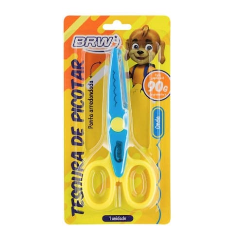 Informações do Produto: A tesoura de picotar papel formato curvilíneo são bem utilizadas em trabalhos artesanais com papéis e em atividades escolares. O produto possui lâmina em aço inox e cabo plástico para o conforto na hora de fazer os recortes. Tem maior durabilidade, pois não enferruja e também conta com ponta arredondada, o que garante total segurança para as crianças usarem a criatividade sem medo.