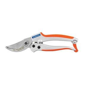 Tesoura leve, proporcionando melhor agilidade no uso. Lâminas em aço alto carbono temperado, proporcionando maior durabilidade do fio e um corte mais preciso e macio. Cabo ergonômico e confeccionado em alumínio com material emborrachado, oferecendo leveza e maior conforto ao usuário. Batente emborrachado, amortecendo o impacto de fechamento das lâminas. Trava de segurança para fechamento das lâminas quando não estão em uso. Diâmetro de corte máximo admitido: 20 mm. Tecnologia Bypass (corte cruzado). Indicado para galhos verdes. Durante o corte, ocorre o cruzamento entre lâmina e contra-lâmina. Possibilita um corte preciso e sem rebarbas, que não deixa marcas no galho e facilita a cicatrização.