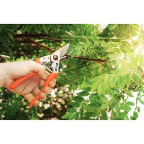 Se você deseja um cuidado profissional para o seu jardim irá precisar da Tesoura de Poda Profissional Tramontina em Aço com Cabo Emborrachado. Ela possui uma lâmina extremamente afiada de alta qualidade, ideal para a poda de frutíferas, flores e plantas ornamentais. E o cabo anatômico e emborrachado proporciona maior conforto e precisão durante o trabalho. Com essa ferramenta seu jardim ficará ainda mais bem cuidado. - Tesoura leve, proporcionando melhor agilidade no uso.- Lâminas em aço carbono temperado, proporcionando maior durabilidade do fio e um corte mais preciso e macio.- Ajuste de aproximação entre as lâminas.- 2 Níveis de abertura das lâminas.- Estrutura maciça em alumínio forjado.- Cabo anatômico e ergonômico proporcionando conforto ao operador.- Batente emborrachado, amortecendo o impacto de fechamento das lâminas.- Trava de segurança para fechamento das lâminas quando não estão em uso.- Diâmetro de corte máximo admitido: 20 mm.- Tecnologia Bypass (corte cruzado). Indicado para galhos verdes. Durante o corte, ocorre o cruzamento entre lâmina e contra-lâmina. Possibilita um corte preciso e sem rebarbas, que não deixa marcas no galho e facilita a cicatrização. Observações - A tesoura é própria para poda de frutíferas, flores e plantas ornamentais.- Conservar a ferramenta limpa, secando-a depois do uso e aplicando gotas de óleo nas lâminas e articulações.- Cuidado: A lâmina é afiada. O contato pode resultar lesões. Manuseie com cuidado e mantenha fora de alcançe das crianças.- Para descarte dos produtos e embalagens siga as orientações de reciclagem vigentes. Características Gerais EAN13 7891117097815 DUN14 17891117097812 NCM 8201.50.00 Peso Líquido 0,2740 kg. Peso Bruto 0,2890 kg. Metragem 0,000814 m³. Dimensões Embalagem (Compr. X Larg. X Alt.) 275x 105x 31 mm. Dimensões Produto (Compr. X Larg. X Alt.) 215x 65x 20 mm. Cor 1 FFA500 Hexa