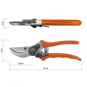 Modo de uso: Própria para poda de frutíferas, flores e plantas ornamentais. Conservar a ferramenta limpa, secando-a depois do uso e aplicando gotas de óleo nas lâminas e articulações. A lâmina é afiada, o ;contato pode resultar lesões. Manuseie com cuidado e mantenha fora de alcançe das crianças. ;Para descarte dos produtos e embalagens siga as orientações de reciclagem vigentes.