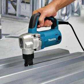 A Tesoura Punção JN3201 é uma escolha confiável para operações exigentes na indústria, proporcionando cortes precisos em diferentes materiais. Seu design durável e recursos práticos a tornam uma ferramenta essencial para trabalhos em alumínio, inox e metal. É uma ferramenta robusta, projetada para operações contínuas em aço e aço inoxidável. Com um motor potente de 710W, ela oferece eficiência e durabilidade em diversos trabalhos de corte. Seus rolamentos de esferas e agulhas garantem uma vida útil mais longa, enquanto o medidor de espessura integrado proporciona conveniência ao operador.