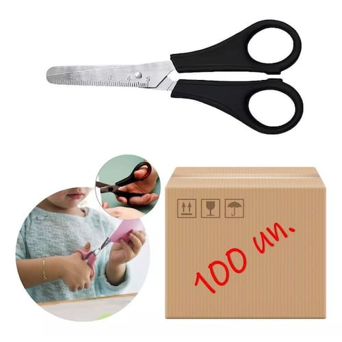 Este kit de 100 tesouras escolares da marca Leonora é perfeito para uso em sala de aula, escritórios ou mesmo para uso doméstico. As tesouras têm uma lâmina de aço inox de alta qualidade, garantindo um corte reto e preciso sempre que você precisar. O cabo é feito de polipropileno resistente, proporcionando um manuseio confortável e seguro.