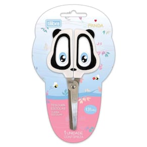 Tesoura Escolar Arredondada Formato de Panda 131mm Tilibra