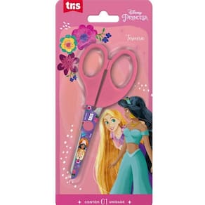 Com pontas arredondadas e cabo resistente em PP, a tesoura Princesas possui as lâminas decoradas, 13cm de comprimento total e 1,5mm de espessura de lâmina.