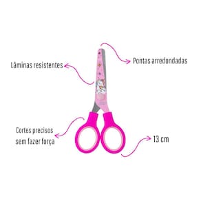Que tal levar o mundo magico dos Unicornios para a sua casa? Com a Tesoura Escolar Magic Unicornio isso e mais que possivel, com lâminas resistentes e com pontas arredondadas, cortes precisos sem fazer força e grande durabilidade.