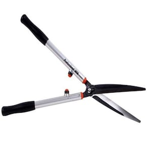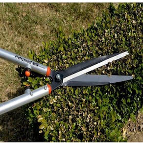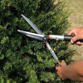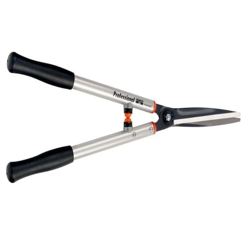 Tesoura profissional de alta qualidade com hastes longas, sendo indicada para trabalhos em parques, jardins e viveiros.