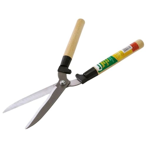 Aplicação: Ideal para podar e aparar grama, cercas-vivas, sebes e arbustos. Com cabos em madeira maciça. Lâmina ondulada de aço carbono. Diâmetro de corte: 8 mm. Ângulo de corte: 45° (podendo variar até 5°)