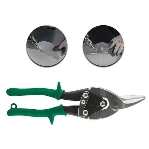 DESCRIÇÃO: Tesoura Tipo Aviação 10 250mm paraCortar Chapas, Calhas, Rufos, AluminioTipo Funileiro comCorte Direito.REF. ST8007 Indicado para corte de chapas de até 1mm de expessura; Nunca ultrapassar a capacidade da tesoura, isso danificará as laminas; Mantenha as articulações lubrificadas Cabo ergonomico Trava para mante-la fechada. Características da Ferramenta; Mecanismo de alavanca dupla permite alcançar força de corte máxima ao aplicar esforço mínimo. Dureza das bordas da lamina. Laminas curvadas para trabalhar mais efetivamente nos cortes curvos de chapas de metal. Equipadas com cabos convenientes anatômicos com revestimento. Informações técnicas: -Cor; Verde- Modelo; Corte Direito- Tamanho; 25cm- Capacidade; Chapas de até 1mm- Fabricante; Starfer- Funcionalidade; Cortar Chapas, Calhas, Rufos, Aluminio- Composição/Material; Aço Carbono e PVC- Conteúdo da Embalagem; 01 tesoura- Garantia do Fornecedor; 180 dias de garantia contra defeitos de fabricação- Peso liq. Aproximado do produto Kg ; 366g
