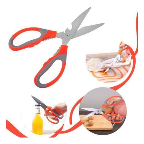 Tesoura Culinária Multiuso Desenvolvida especialmente para sua cozinha deixará seu dia a dia muito mais prático com suas multifunções, lâminas produzidas em aço inox e cabo ergonômico emborrachado proporcionam máximo conforto e eficiência durante o corte Preço por Unidade Características Material: Metal e Plástico Medidas: 21 cm Comprimento total Ideal para corte de peixes e aves. É possível abrir tampas e quebrar nozes. . INFORMAÇÕES IMPORTANTES: - A s cor es dos produtos podem sofrer variação de tonalidade, de acordo com a configuração do seu dispositivo ou monitor. Marca: Não Informado