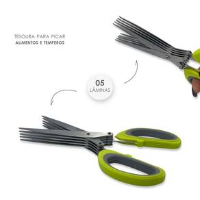 Essa tesoura é indispensável para trazer mais praticidade nos preparos diários da cozinha. Perfeita para picar legumes, verduras e temperos frescos. Possui 5 pares de lâminas para agilizar ainda mais os preparos.