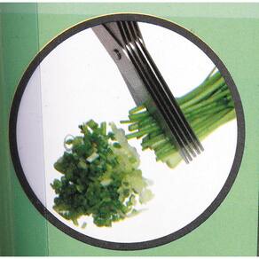 Um utensílio diferente em sua cozinha. Essa tesoura é perfeita para picar e cortar diversos tipos de temperos, como salsinha, coentro, manjericão, dentre outros. Composta de 5 lâminas em metal, possui cabo emborrachado e ergonômico, proporcionando um manuseio firme e seguro. Com ela, suas receitas vão ficar mais saborosas, na medida certa, e você irá receber muitos elogios nas refeições.