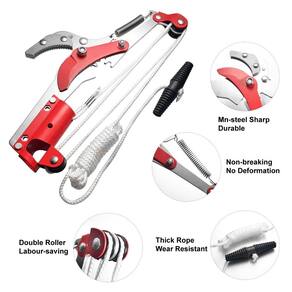 Esta Tesoura podadora de galhos de árvores extensível é perfeito para cortar galhos altos sem ter que subir em escada. A lâmina de poda retificada com precisão totalmente endurecida permanece mesmo durante uso pesado. Acomoda galhos de até 3cm de espessura. afiado em 3 lados, para facilitar a remoção de galhos mais grossos de forma rápida e fácil. Fácil de instalar e remover, sem necessidade de ferramenta. Sistema de polia dupla para cortar galhos densos com o mínimo de esforço, economizando pelo menos 25% de esforço. Resistente ao uso continuo. Cor: vermelho Material: aço SK5 Tamanho: 44*22*2cm Lâmina do Serrote: 29 cm Peso Total: 700 g Cor: Vermelho Conteúdo do pacote: 1 * tesoura com Serrote de alta altitude, não acompanha o Cabo longo