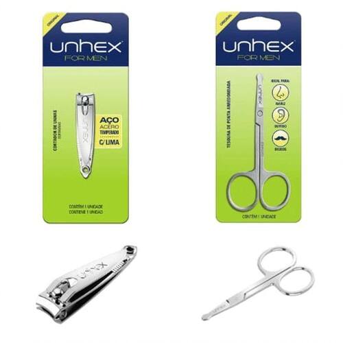 KIT COM 1 TESOURA DE PONTA ARREDONDADA E 1 CORTADOR DE UNHAS UNHEX FOR MEN