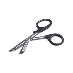 Tesoura ponta romba 14 cm Tesoura ponta romba para cortar as vestes da vítima a fim de identificar lesões ocultas que necessitem de um pronto atendimento. Tesoura especial para aph. Com lâminas ponta romba própria para não ferir a vítima . Tamanho de 14 cm. Cor: preta Marca: Não Informado