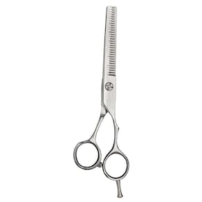 Tesoura desbaste em aço inoxidável 6,0?, lâmina dentada com 32 dentes ideal para desbastar e reduzir o volume dos cabelos ou até mesmo cortes de cabelo em degrade