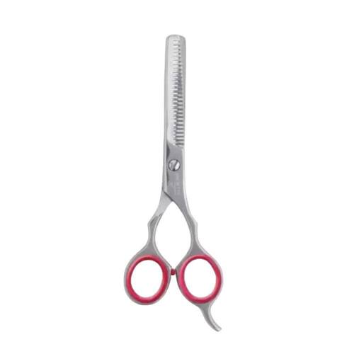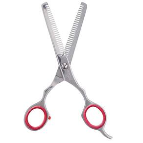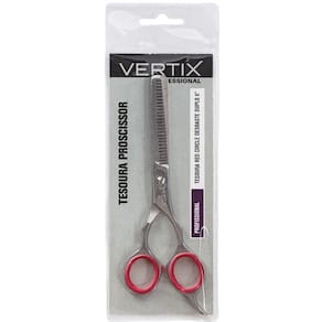 Tesoura com duas lâminas dentadas, ideal para desbastar e reduzir o volume dos cabelos ou até mesmo cortes de cabelo em degradê.