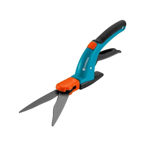 Através da funcionalidade de corte rotativa em 360°, tanto os canhotos quanto os destros podem trabalhar confortavelmente. A empunhadura ergonômica com componentes de plástico macio permite operar o produto com facilidade. As lâminas de corte com gume ondulado e revestimento antiaderente garantem um corte preciso e consistente. A tesoura pode ser bloqueada rápida e facilmente através do botão de bloqueio acionado com uma só mão.