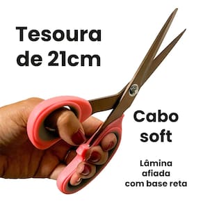 Tesoura Titanio 8,5 Polegadas Profissional Cabo Soft Corte e Costura Se você já se frustrou com tesouras que perdem o fio rapidamente, emperram ou simplesmente não cortam direito, chegou a hora de dar um upgrade nas suas ferramentas! A Tesoura Profissional de Corte de Tecido em Aço Inoxidável é a escolha perfeita para quem busca precisão, resistência e conforto no uso diário, seja no seu ateliê, casa ou no escritório.