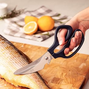 A tesoura trinchante Tramontina é uma peça indispensável para sua cozinha. Perfeita para destrinchar aves, a tesoura de cozinha possui lâmina em aço inox com alto poder de corte e cabo em polipropileno que garante um manuseio super seguro e confortável. A tesoura corta temperos ainda é fácil de limpar e pode ir à máquina de lavar louças. O produto perfeito para levar mais praticidade à sua cozinha! Projetada para ser uma ferramenta multiuso na cozinha, essa tesoura é capaz de cortar diversos alimentos, como temperos, ervas, frango, peixes e outros ingredientes com facilidade.