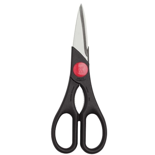 Tesoura de uso múltiplo Zwilling Facilita o trabalho para suas mãos. Com suas lâminas fortes e seu cabo grande e confortável, a tesoura TWIN Original corta papel, papelão e até materiais mais duros como carpete. Dimensões: 200 mm / 8'. Cor: Preta Foto meramente ilustrativa