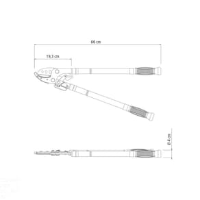 A poda de árvores, flores e plantas ornamentais se tornou mais simples com o tesourão de poda tipo anvil Tramontina em aço com cabos extensíveis de 46,5 até 78,5 cm. Um tesourão muito prático que possui cabo extensível e possibilita regulagem de altura, facilitando o alcance aos galhos mais altos. Sua lâmina tipo anvil é ideal para galhos secos e requer pouco esforço para realizar o corte. Com a Tramontina você tem em casa um jardim dos sonhos! Orientações - Lâminas em aço carbono temperado para um corte preciso e macio.- Cabos metálicos extensíveis de 46,5 até 78,5 cm.- Sistema de articulação que potencializa a força de corte e se ajusta em função do diâmetro do galho a ser cortado.- Empunhaduras ergonômicas emborrachadas.- Diâmetro de corte máximo admitido: 35 mm.- Tecnologia Anvil (corte tipo "Bigorna"). Indicado para galhos secos e duros. Durante o processo, a lâmina corta o galho e bate em uma base fixa, a bigorna. Esse processo de corte facilita o trabalho, pois requer pouca força, com mínima vibração do braço. Características Gerais EAN13 7891117043904 DUN14 17891117043901 NCM 8201.60.00 Peso Líquido 1,8260 kg. Peso Bruto 1,9180 kg. Metragem 0,007388 m³. Dimensões Embalagem (Compr. X Larg. X Alt.) 725x 295x 40 mm. Dimensões Produto (Compr. X Larg. X Alt.) 660x 275x 40 mm. Cor 1 FFA500 Hexa Observações - Indicado para poda de frutíferas, flores e plantas ornamentais.- Poda de galhos secos ou galhos altos.- Conservar a ferramenta limpa, secando-a depois de lavá-la. Aplique fina camada de óleo sobre as lâminas e articulações.- Cuidado: A lâmina é afiada. O contato pode resultar lesões. Manuseie com cuidado e mantenha fora de alcançe das crianças.- Para descarte dos produtos e embalagens siga as orientações de reciclagem vigentes.