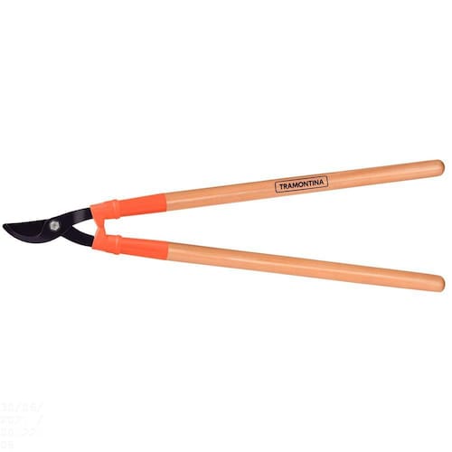 Você não precisa passar trabalho para cortar galhos mais grossos ou de difícil acesso na hora de podar as plantas do seu jardim. Para facilitar esse trabalho desenvolvemos o tesourão de poda tipo bypass Tramontina em aço com cabo de madeira 60 cm. Com ele será mais fácil cortar os galhos mais altos ou que se encontram em meio a copa da árvore. O seu cabo longo e sua lâmina afiada e de alta qualidade fazem com que a força necessária para o corte seja muito menor. Isso garante maior precisão e acabamento ao seu trabalho. Orientações - Lâminas em aço carbono temperado para um corte preciso e macio.- Cabos de madeira com 60 cm.- Batente plástico.- Eficiente para galhos com diâmetro até 30 mm.- Tecnologia Bypass (corte cruzado). Indicado para galhos verdes. Durante o corte, ocorre o cruzamento entre lâmina e contra-lâmina. Possibilita um corte preciso e sem rebarbas, que não deixa marcas no galho e facilita a cicatrização. Características Gerais EAN13 7891117030881 DUN14 17891117030888 NCM 8201.60.00 Peso Líquido 1,2100 kg. Peso Bruto 1,3080 kg. Metragem 0,006813 m³. Dimensões Embalagem (Compr. X Larg. X Alt.) 830x 230x 33 mm. Dimensões Produto (Compr. X Larg. X Alt.) 776x 238x 32 mm. Cor 1 F0E68C Hexa Observações - Destinada a poda de galhos mais grossos ou duros e galhos altos ou de difícil acesso.- Técnica adequada de poda: O corte deve ser limpo, a 6 mm da união do brote.- Conservar a ferramenta limpa, secando-a depois de lavá-la. Aplique fina camada de óleo sobre as lâminas e articulações.- Cuidado: A lâmina é afiada. O contato pode resultar lesões. Manuseie com cuidado e mantenha fora de alcançe das crianças.- Para descarte dos produtos e embalagens siga as orientações de reciclagem vigentes.