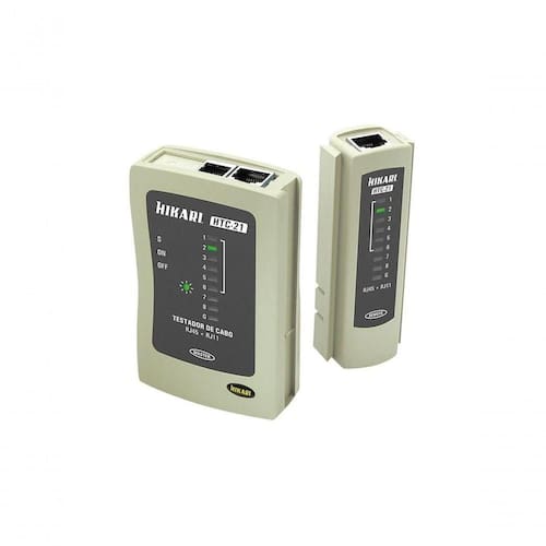 O Testador Cabo De Rede Hikari Rj11/ Rj45 Htc-21 21I537 é um instrumento essencial para medir a frequência ou intensidade de dados transmitidos pelo cabo. Com um display de LED indicador de resultados, pode testar automaticamente cabos RJ45 e RJ11 com facilidade e rapidez.
