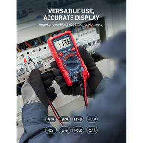 AstroAI Testador de multímetro, TRMS 4000 contagens, medidor de volts, ohmímetro de alcance automático, digital 1,5 V/9 V/12 v, testador de tensão da bateria, medição de tensão, resistência à - Ampla aplicação – o multímetro AstroAI M4K0R mede com precisão a tensão AC/DC até 600V, corrente até 10A, resistência a 40MO. Você pode usá-lo para teste de continuidade, teste de diodo, teste de bateria e teste de fio ativo. Inclui modos de teste de bateria de 1,5 V, 9 V e 12 V para testar facilmente uma ampla variedade de baterias. A luz do multímetro fica vermelha para baixa tensão e verde para tensão suficiente. - Sem contato - Teste de tensão sem contato totalmente seguro com alarmes de som e luz. Você pode detectar tensão CA sem o uso de cabos de teste. Usa função NCV: quando o medidor detecta um forte sinal AC, a luz indicadora vermelha acende e a campainha emitirá um bipe rápido. - Design atencioso – Suporta retenção de dados, desligamento automático, indicador de bateria fraca e campainha de continuidade. Inclui recursos convenientes como alarme auditivo e visual, tela LCD retroiluminada e lanterna que facilitam o uso. Duas pilhas AAA de 1,5 V estão incluídas no pacote. - Garante segurança - O fusível duplo de cerâmica é anti-queima e protege contra sobrecarga. O multímetro passou pelos padrões de segurança de 600V de categoria III de sobretensão. A capa de silicone é capaz de proteger o multímetro de danos e evitar choques elétricos. - Dicas adicionais - Este multímetro foi projetado para solucionar uma variedade de problemas elétricos automotivos e domésticos com segurança e precisão. É uma ferramenta adequada se você quiser fazer algumas melhorias domésticas ou comerciais, seja você mesmo ou amador.