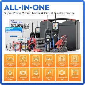 - ?Localização de circuito aberto?Mude o kit testador de circuito V500 Pro para o modo II, você poderá usar o localizador de disjuntores que pode localizar facilmente o ponto do disjuntor, conexões abertas, fios quebrados, vazamentos de corrente com mudança de tom e até mesmo traçar fios/cabos sem danificar o isolamento. Esta ferramenta localizadora de disjuntores funciona em todos os tipos de problemas de circuito de veículos, como aqueles encontrados em carros, SUVs, minivans, caminhões, tratores, barcos e trailers