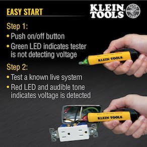 Klein Tools Testador de tensão NCVT1P, caneta testadora de baixa tensão sem contato, 50 V a 1000 V CA, alarmes de LED audíveis e piscando, clipe de bolso - DETEÇÃO NÃO CONTACTO de tensão CA em cabos, cabos, disjuntores, luminárias, interruptores, tomadas e fios não invioláveis - INDICADORES VISUAIS E AUDÍVEIS de detecção de tensão com LED vermelho brilhante de alta intensidade e um tom audível - Ampla aplicação com uma faixa de detecção de energia CA de 50 a 1000 V - Conservar baterias com função de desligamento automático - Design compacto leve e durável com um clipe conveniente que cabe com segurança no bolso; proteção contra quedas de 2 m - Seguro confiável com uma classificação de segurança de CAT IV 1000V - Recomendado para tomadas não invioláveis; para tomadas resistentes à violação, use Cat. Nos. NCVT-2P ou NCVT-3P no modo de baixa tensão