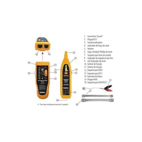 Informações do Produto O localizador e testador de cabos TX1500 tem função de localizar, rastrear e testar cabos mantendo a integridade física da estrutura na qual se encontram. Tratando-se de linhas telefônicas e redes LAN esse aparelho é indicado para o auxílio à instalação, debug e manutenção da mesma. - Anti Inferferência - Display de intensidade de sinal - Rastreamento de fio telefônico e cabo Lan - Identifica fios em sistemaselétricos - Verifique condição de cabo Lan - Teste de continuidade - Sonda de tensão DC - Flash LED Informações Técnicas Alimentação 9V 6F22 Formato de Sinal Impulso multi frequencial Distância Máxima 100m Corrente máxima Emissor 9mA, Receptor 28mA Testador E Localizador De Cabos Multitoc Tx 1500 Kit