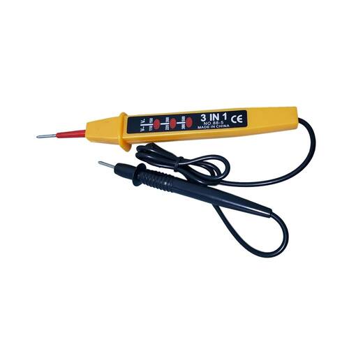 Testador de tensão continua DC ou alternada AC . Não usa pilhas ou bateria, utiliza a própria tensão testada. Indica automaticamente tensão presente em 3 escalas AC ou DC. Tensão CA: 110 / 220 / 380 V. Tensão DC: 150 / 300 / 500 V. Comprimento do cabo: 80 cm. Dimensões: 185 x 26,5 x 23 mm. Peso 80 g. Marca: Não Informado Ean: 8430422241415
