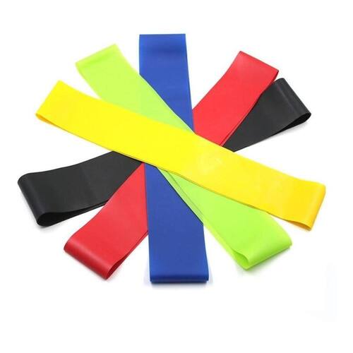 Conjunto com 5 mini bands. Látex de alta qualidade e possui 5 níveis de resistência: Ultra Leve (Verde), Leve (Azul), Médio (Amarela), Forte (Vermelha) e Ultra Forte (Preta).