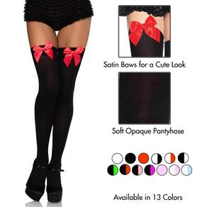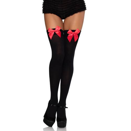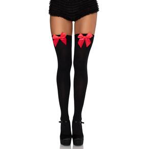 Meias femininas Leg Avenue OS Satin Bow Accent, preto/vermelho, tamanho único