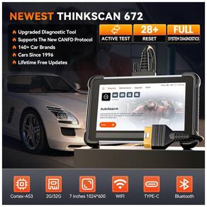 O scanner Thinkscan 672 Bidirectional Scan Tool é compatível com mais de 140 marcas de veículos, oferecendo diagnóstico completo de sistemas OE-level e suporte ao protocolo CAN-FD. Ele realiza testes bidirecionais, possui 28 funções de reset populares e atualizações gratuitas para a vida toda, com interface em mais de 28 idiomas.