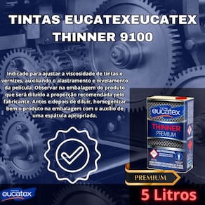 O Thinner 5 Litros 9100 Eucatex é um solvente de alta performance, ideal para quem busca praticidade e eficiência na limpeza e diluição de tintas, vernizes e esmaltes. Com sua embalagem de 5 litros, este produto é perfeito para atender a grandes demandas em oficinas, marcenarias e projetos de pintura, garantindo um acabamento impecável e a preservação de suas ferramentas.