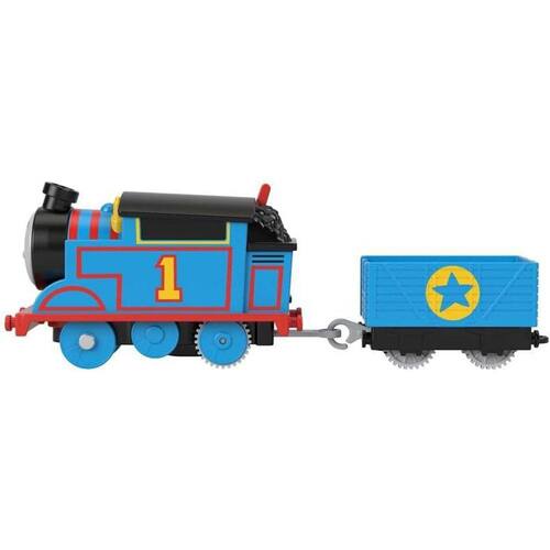 Crie aventuras emocionantes de Thomas e seus Amigos com este trem de brinquedo movido a pilha, feita para se parecer com Thomas, a locomotiva azul n.° 1 Os jovens condutores podem virar o interruptor na parte superior da locomotiva para enviar Thomas e seus vagões correndo pelos trilhos Esta locomotiva motorizada de brinquedo é compatível com todos os trilhos Thomas e seus Amigos (conjuntos de trilhos vendidos separadamente). A locomotiva vem com conectores de plástico para acoplar outras locomotivas, carros ou vagões de carga motorizados ou de puxar Para condutores em idade pré-escolar a partir dos 3 anos