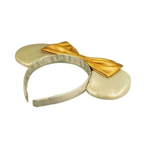 Tiara toda dourada para cabelo com enfeite no formato das orelhas e laço dourado da Minnie. Material: poliéster e plástico.Informação AdicionalPeso Kg 0.05Altura cm 20.00Largura cm 25.00Comprimento cm 2.00