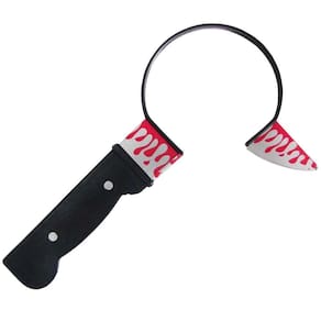 Design Aterrorizante: A tiara apresenta uma faca realista cravada na cabeça, criando a ilusão de que você acabou de sair de uma cena de filme de terror. O detalhamento meticuloso da faca e o sangue falso dão um toque autêntico à sua fantasia.