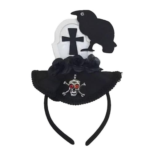 A tiara Túmulo Caveira Corvo Flores Halloween é o acessório perfeito para quem busca um look impactante e temático para festas de Halloween. Com um design sinistro que combina caveiras, corvos e flores, essa tiara promete adicionar um toque macabro e misterioso ao seu visual.