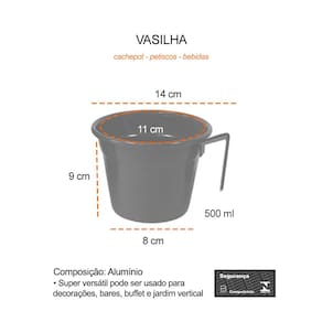Vasilha de aluminio, perfeita para usar em decorações ou mesa de buffet. As vasilhas sao produzidas em aluminio leve e resistente. Os modelos de tigelas são perfeitas para decorar festas, servir petiscos e para jardim vertical.