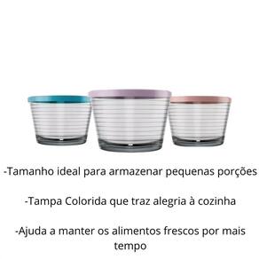 A Tigela de Vidro Ginga 350ml com Tampa Cor é perfeita para quem busca praticidade e organização na cozinha. Com capacidade de 350ml, é ideal para armazenar porções de sobremesas, frutas, molhos, temperos ou pequenos lanches, preservando o frescor dos alimentos por mais tempo. Produzida em vidro resistente e higiênico, não absorve odores nem manchas, mantendo a qualidade dos alimentos. A tampa colorida e funcional garante vedação eficiente, evitando vazamentos e facilitando o transporte. Compacta e versátil, é ideal para o dia a dia, oferecendo durabilidade, estilo e comodidade em um só produto. Especificações: - Marca: Nadir; - Modelo: 3255; - Com Tampa: Sim; - Capacidade: 350ml; - Diâmetro: 9 cm; - Dimensões: 10,5 x 10,5 x 7 cm; - Material: Vidro, Plástico; - Recomendações: A tampa não deve ser exposta a altas temperaturas forno ou micro-ondas ; - : 3 meses 90 dias . Conteúdo da embalagem: -01 Tigela de Vidro Ginga 350ml com Tampa Cor . Marca: Não Informado