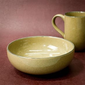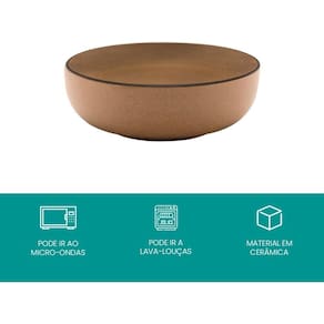 Inspirados na vertente do design biofílico que busca conectar as pessoas com os benefícios da presença da natureza em ambientes e na criação de produtos, apresentamos uma coleção com inspiração natural, trazendo seus elementos mais representativos para um dia a dia mais tranquilo e repleto de bem-estar. As tigelas da linha Flat oferecem uma área maior de uso tornando-se uma opção adequada para empratamentos criativos, além de proporcionarem mais conforto na hora de usar. Com formas retas e funcionais, as peças da linha são fáceis de armazenar até mesmo em armários mais compactos. A decoração Ocre apresenta um tom de marrom suave, assim como é a cor que dá nome a decoração originaria da mistura de amarelo, preto e vermelho. Com acabamento brilhante cada peça ainda recebe a aplicação manual de filete em marrom escuro em sua borda. Nesta opção a tigela com capacidade para 600 ml é vendida individualmente.
