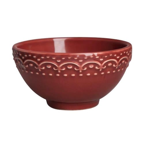A Tigela Natal Celina é produzida em cerâmica e possui capacidade de 550 ml, possui esmalte em alto brilho, que realça a beleza da peça e a textura em alto relevo com arabescos que contornam a peça. É uma aposta perfeita para a mesa de Natal, elevando a mesa-posta com presença e charme.