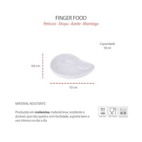 O Finger Food Porta Shoyu é produzido em melamina de alta qualidade, garantindo leveza, resistência e praticidade. Ideal para buffets, restaurantes, hotéis ou uso doméstico, é perfeito para servir molhos, petiscos e porções individuais com sofisticação. Seu design branco moderno traz elegância e versatilidade à mesa, enquanto o material não absorve cheiro ou sabor, facilitando a higienização e assegurando mais higiene no dia a dia.
