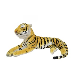 Charmoso tigre de pelúcia deitado. Perfeito para decoração de interiores. Medida do bicho deitado. Enchimento mais compacto. Material: poliéster, Enchimento: fibra de poliéster Código 7HC70BR-F Peso Kg 1.00 Altura cm 34.00 Largura cm 24.00 Comprimento cm 70.00 Certificado Produto certificado pelo ICEPEX, Órgão acreditado pela CGCRE do INMETRO Numero de registro 00040-16 NBR 300/2004