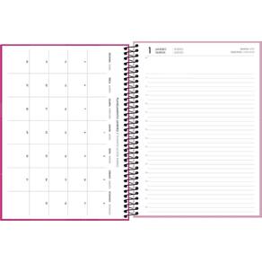 - Bolsa: plástica. - Capa: dura. - Capa acabamento: com detalhe metalizado. - Cor: diversas. - Formato: 200mm x 275mm. - Gramatura: 63 g/m². - Material: Capa Dura Com Acabamento Metalizado. - Número de folhas: 200 folhas. - Parte interna da capa decorada: Sim. - Planejamento anual: Sim. - Planejamento mensal: Sim. - Produto certificado: FSC. - Visão: diária.